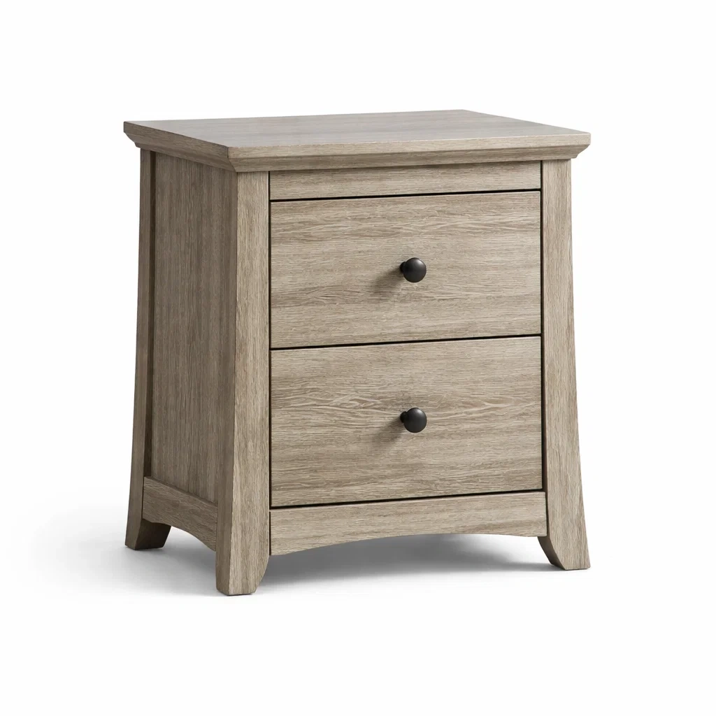 Table de chevet en bois beige avec tiroirs