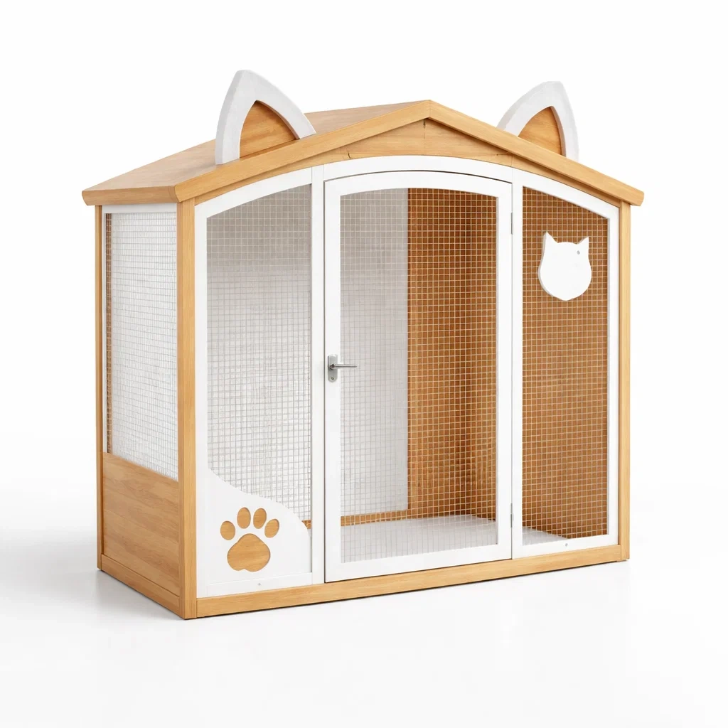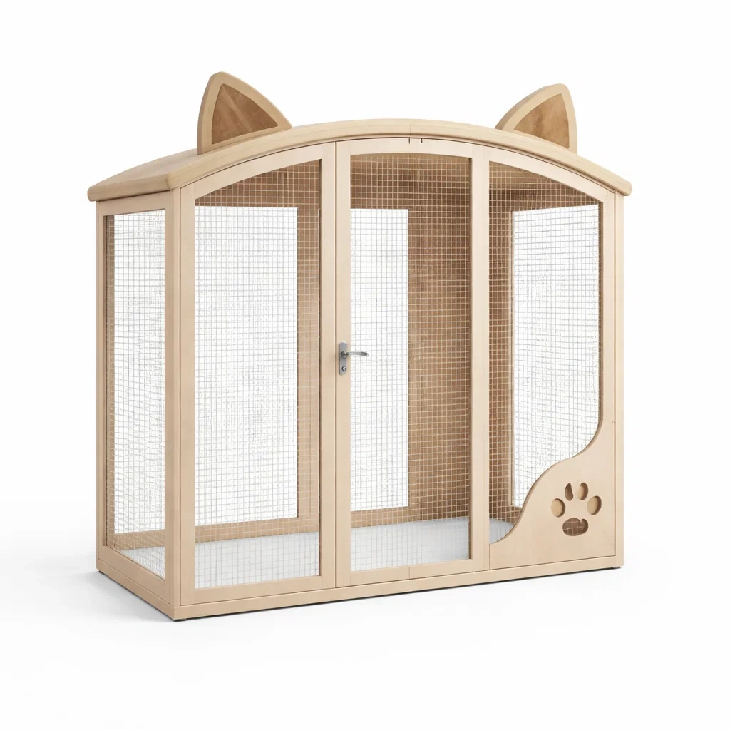 Cage à chat en bois et métal avec oreilles