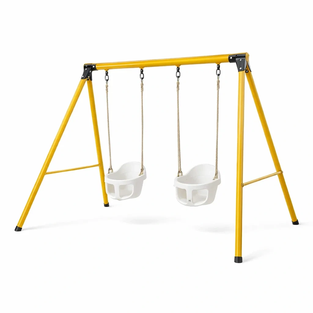 Ensemble de balançoires en métal avec sièges en plastique jaune