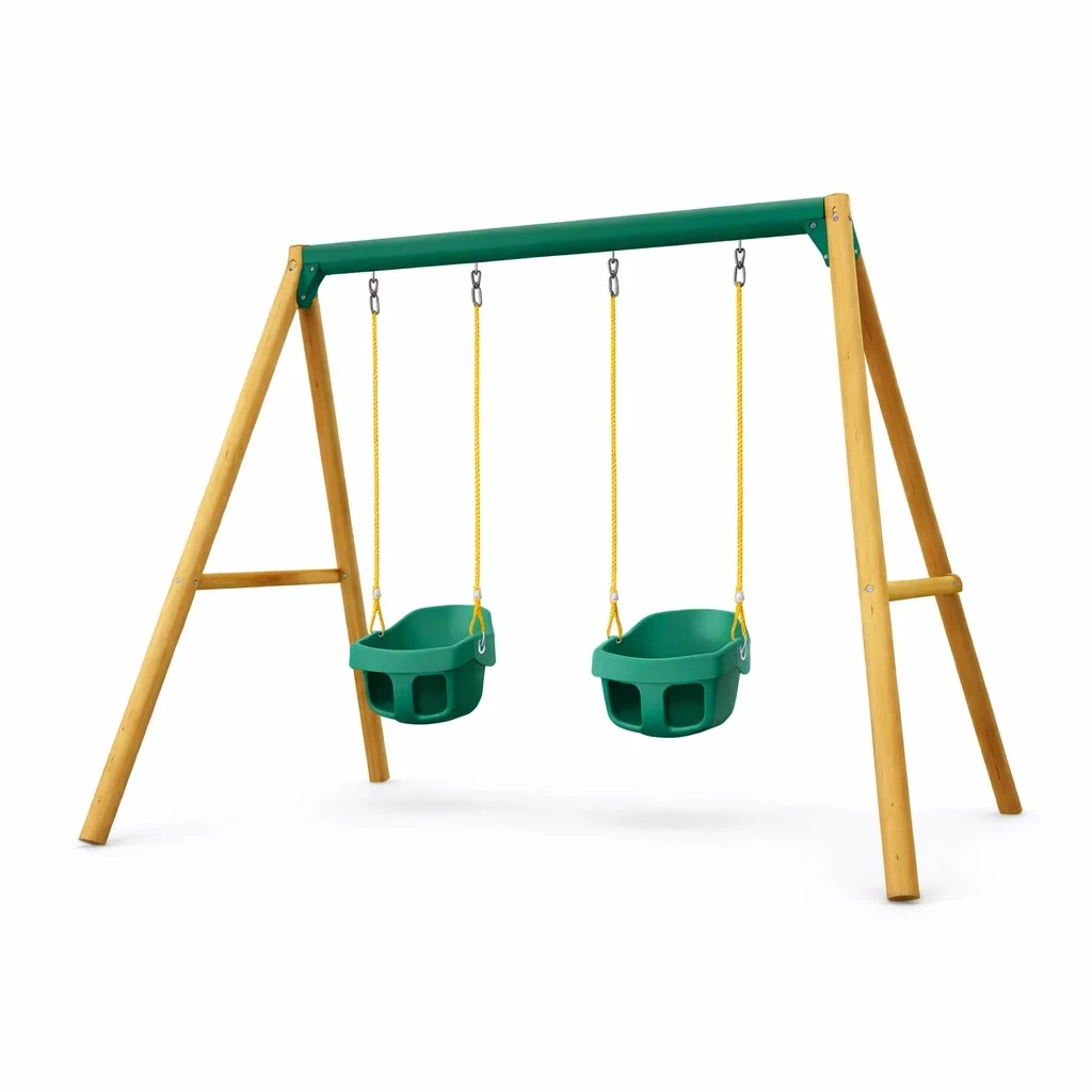 Ensemble de balançoires bébé en bois et polyéthylène vert