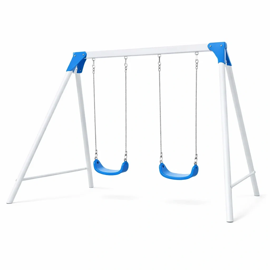 Ensemble de balançoires en métal avec siège en TPE bleu
