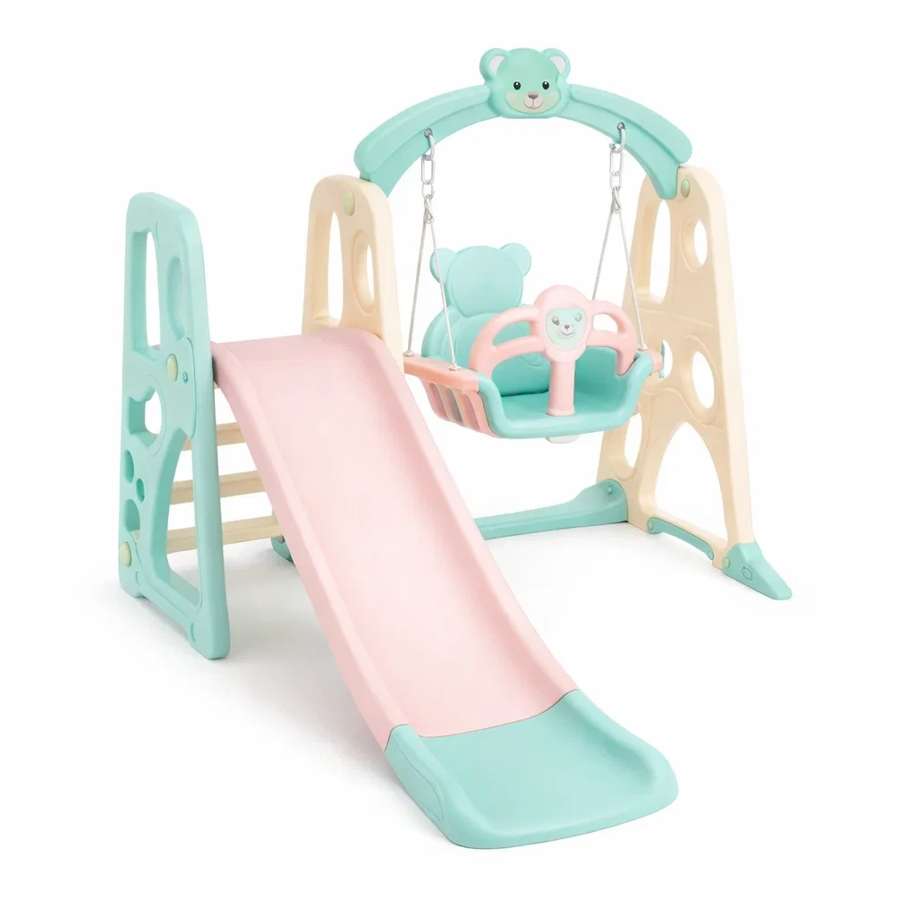 Structure de jeux pour enfants avec toboggan et balançoire ours en plastique