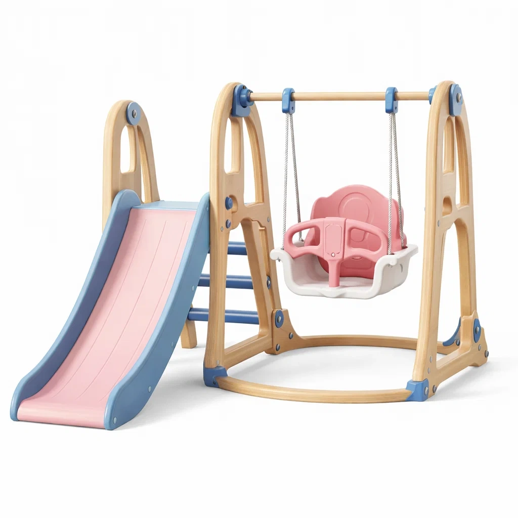 Structure de jeux pour enfants avec balançoire et toboggan en plastique hdpe rose et bleu