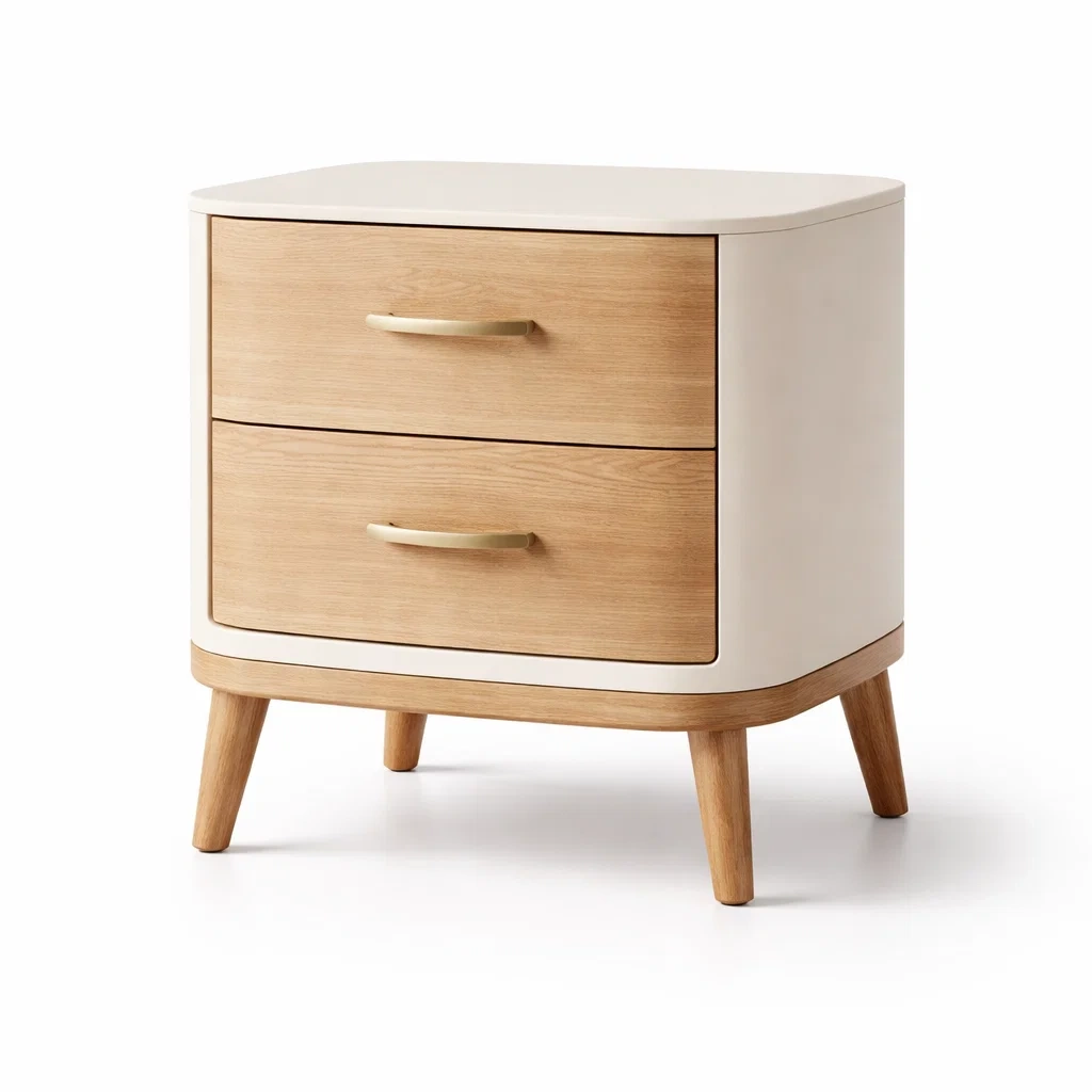 Cette table de chevet est fabriquée en bois d'ingénierie avec des poignées en alliage de zinc. Elle dispose de deux tiroirs spacieux. Dimensions : 50 cm de longueur, 40 cm de largeur et 55 cm de hauteur. Le poids est de 10 kg.